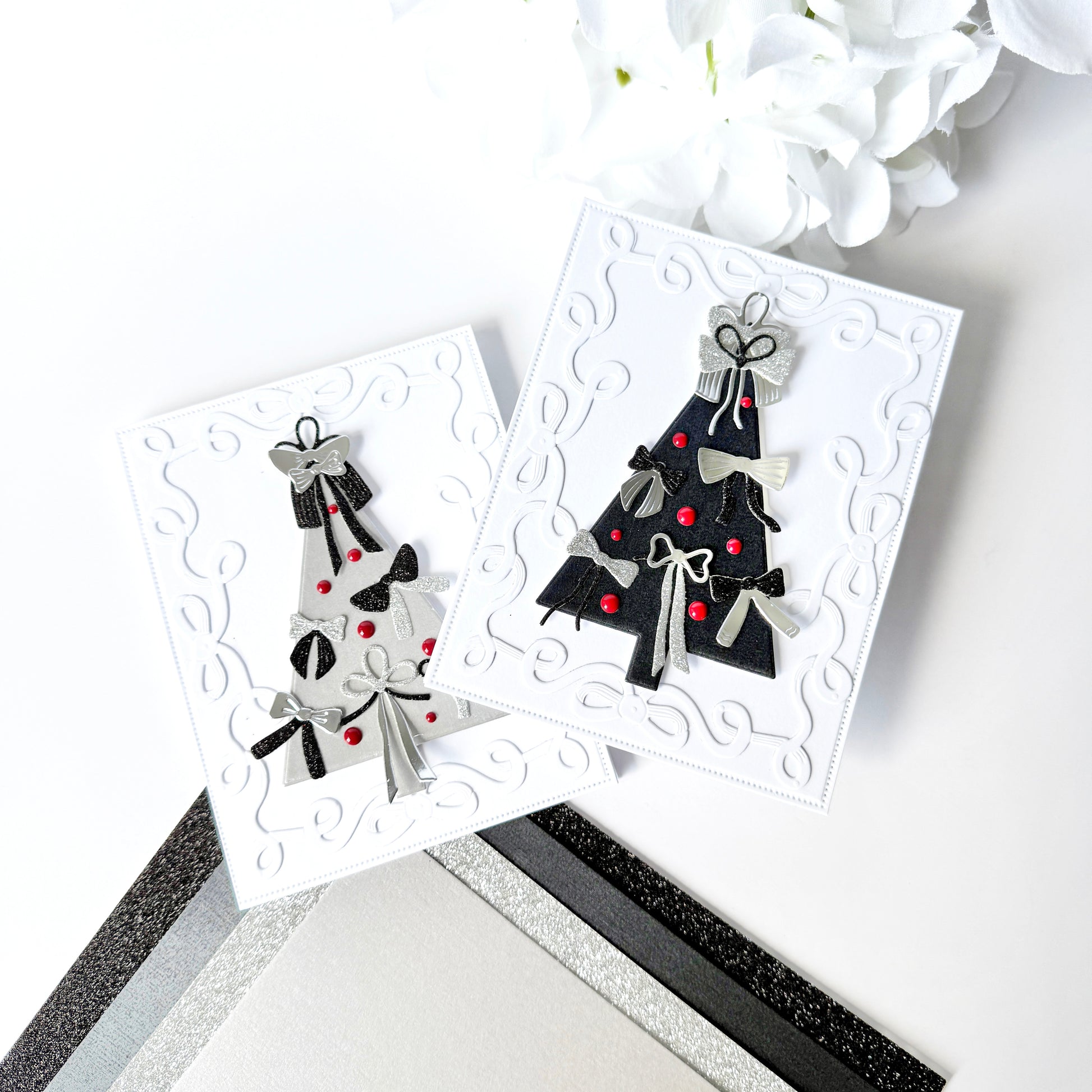 Build-a-Bow Christmas Tree Die Set by Alex Syberia Designs includes 10 dies that let you create a festive Christmas tree entirely from layered bows. This playful and versatile set is perfect for adding a unique touch to your holiday cards, scrapbook pages, gift tags and paper crafting projects.