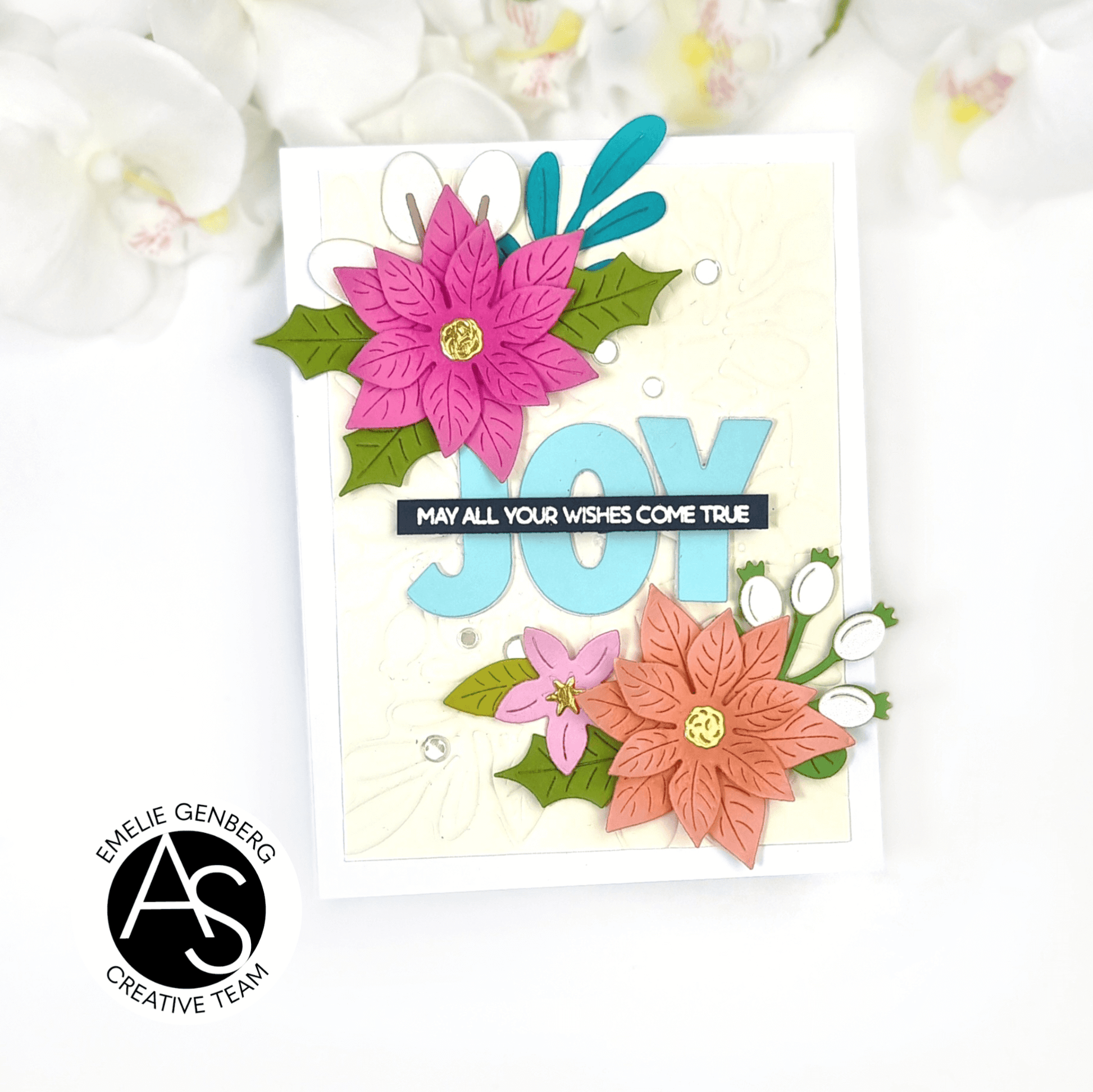 In addition, the set features letter dies (J, O, Y, H – approx. 36 x 25 mm / 1.4 x 1") that are perfect for creating festive sentiments like JOY or HO HO HO, which you can embellish with leaves and flowers for a truly gorgeous finish.