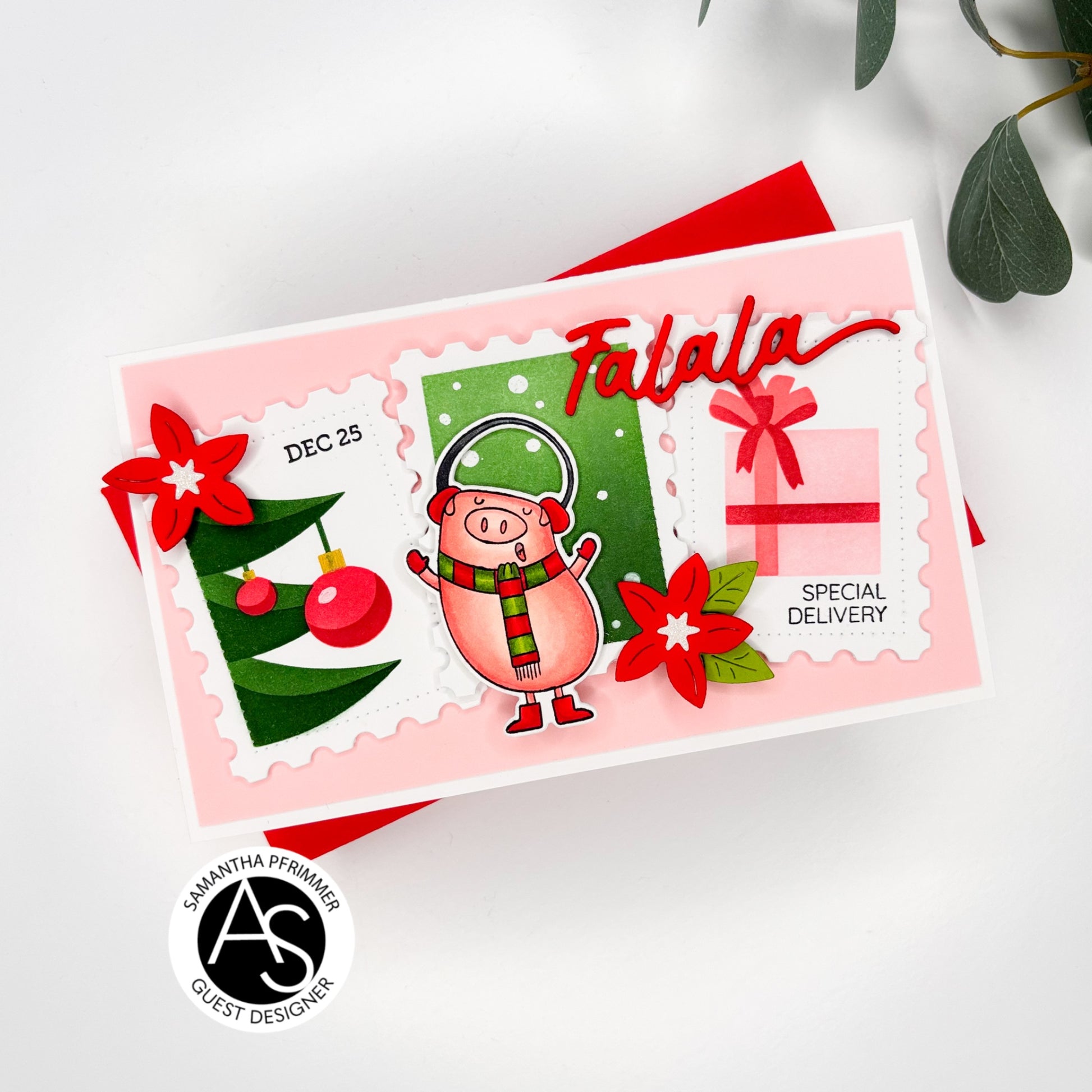 Christmas Postage Stamps Stencil Set (15.2 x 15.2 cm / 6" x 6", 4 layers) by Alex Syberia Designs is designed to coordinate with the Christmas Postage Stamps Stamp Set and the Postage Stamps Cover Die (both sold separately). Together, they allow you to create charming Christmas postage-style designs that look just like festive holiday stamps.