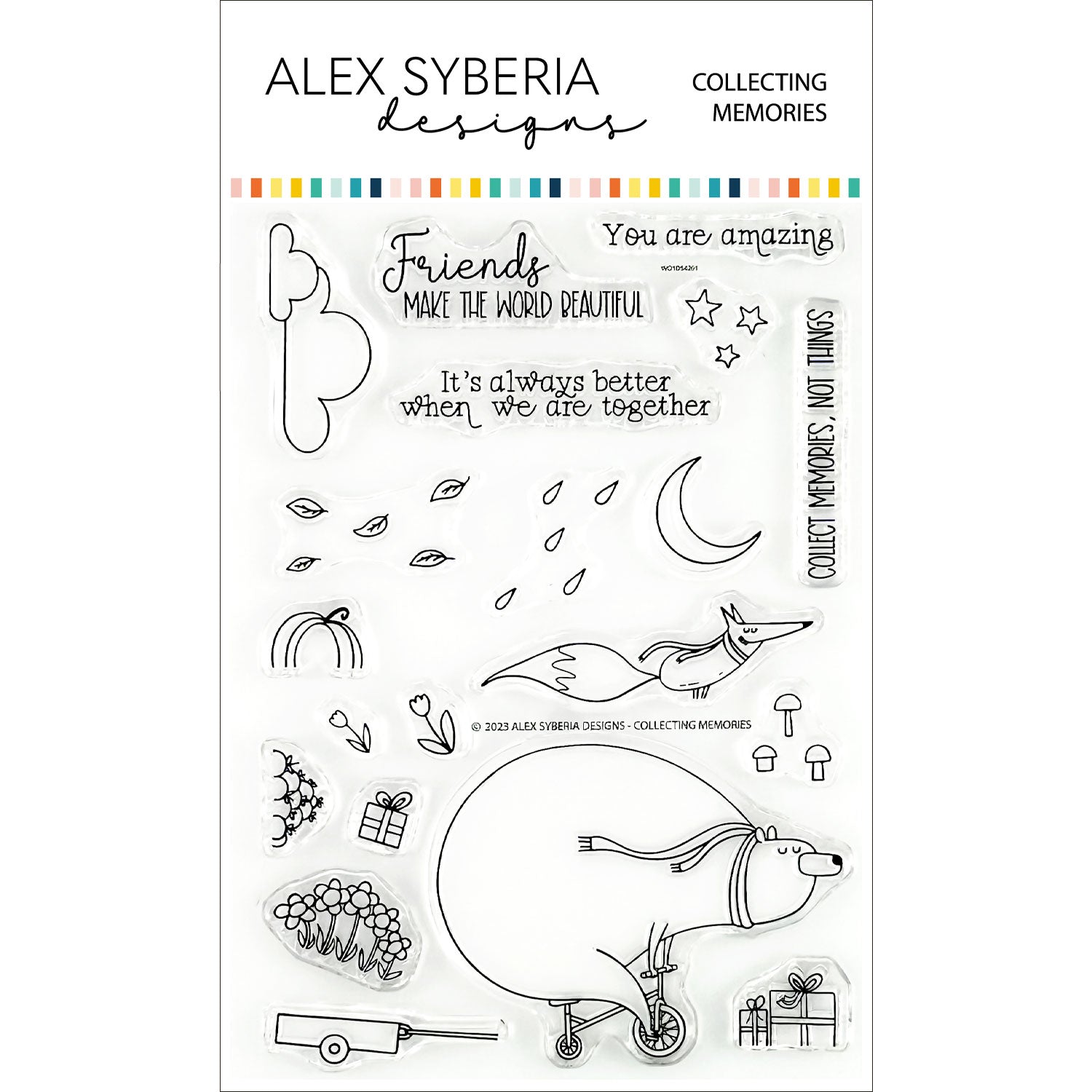 Introducing the charming Collecting Memories Stamp Set featuring adorable bear and fox characters by Alex Syberia Designs, perfect for crafting unforgettable cards, scrapbook layouts, tags, and more. This set is versatile and can be used for autumn-themed projects or to celebrate the beauty of friendship. It includes heartwarming sentiments like "Friends make the world beautiful" and "Collect memories not things."