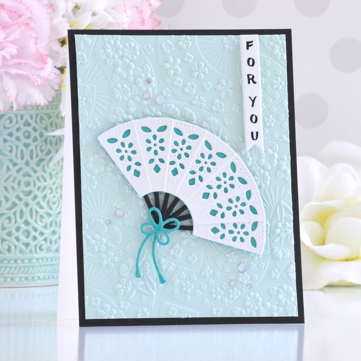 Floral Fans 3D Embossing Folder is a 5.50 x 8.50-inch embossing folder with a wonderful background filled with floating fans against a backdrop of cherry blossoms. A stunning design to add to any of your projects!