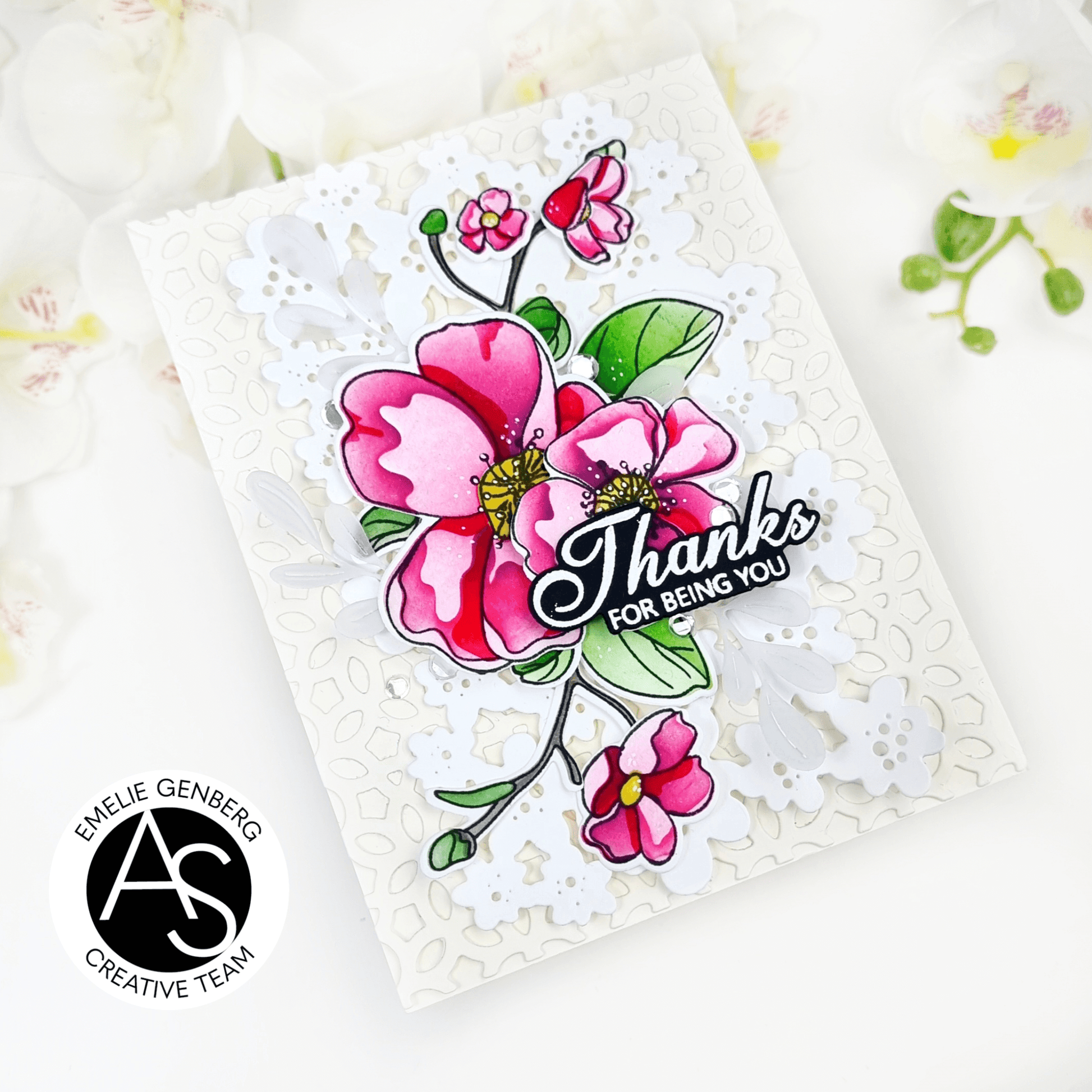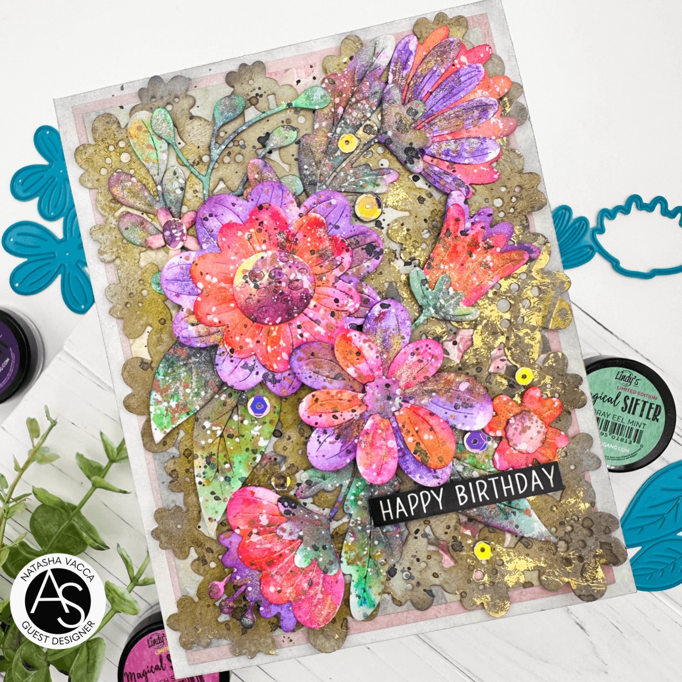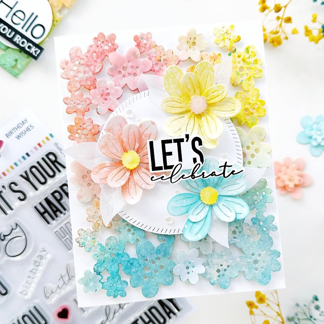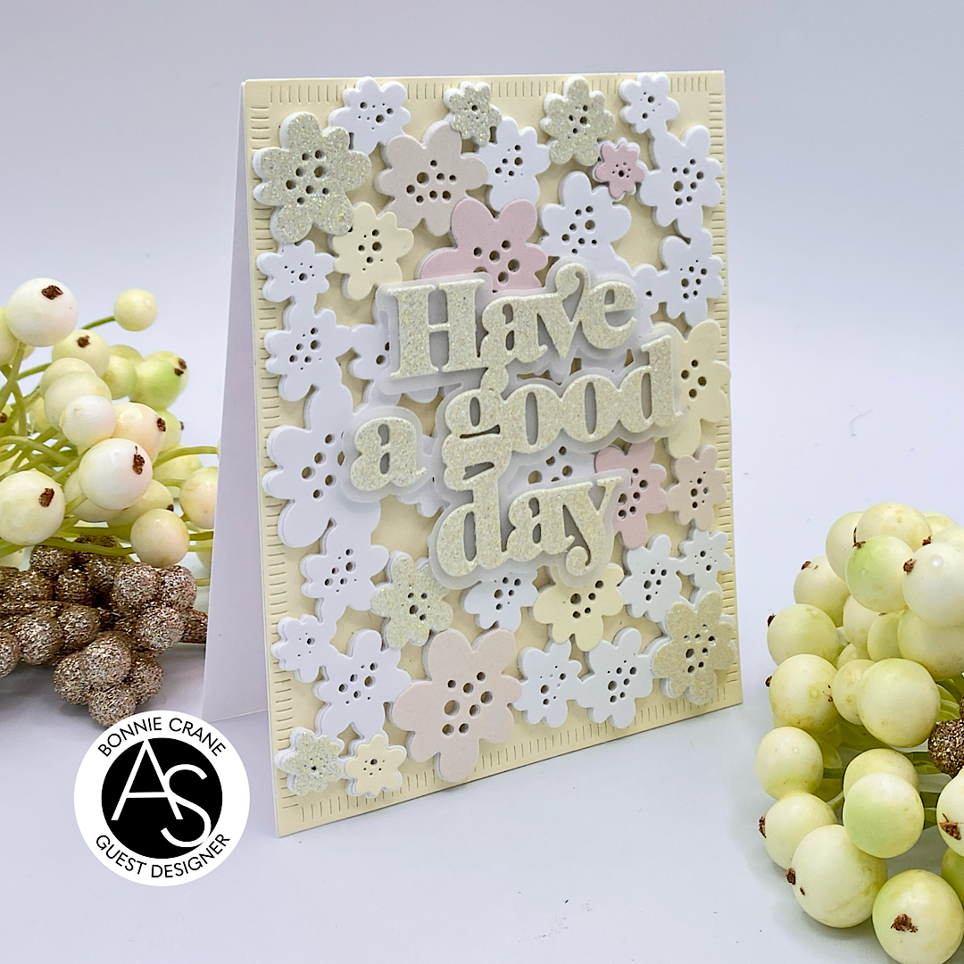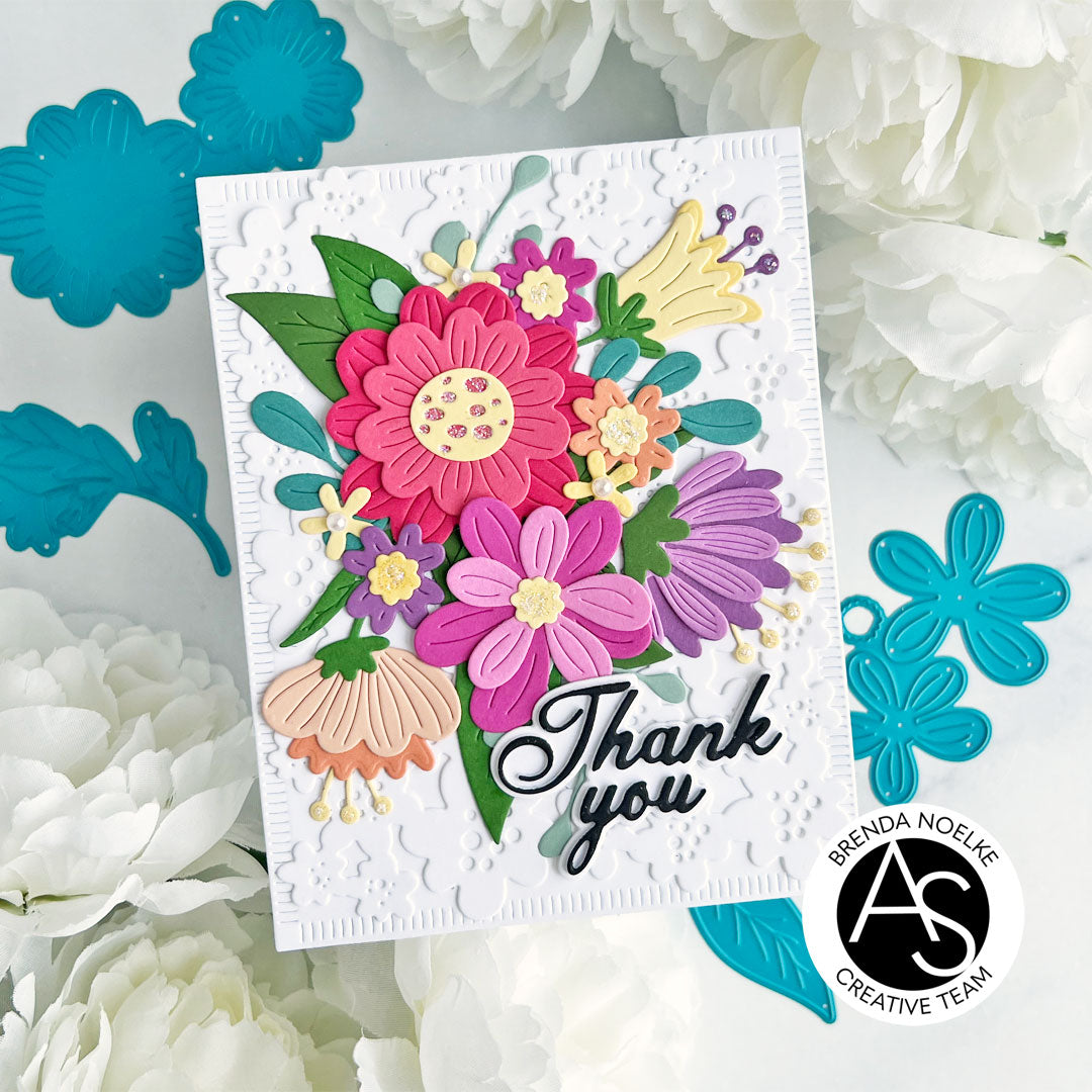 Introducing the new must-have for creating eye-catching projects: the Floral Splendor Cover Die from Alex Syberia Designs. This cover die boasts a beautiful scattering of flowers, perfectly sized at approximately 4.2x5.4 inches to seamlessly fit a standard A2 card base. The set also includes four additional standalone flowers in sizes 1.1x1.2 inches, 0.8x0.9 inches, 0.6x0.7 inches, and 0.4x0.5 inches. These versatile flowers can be layered onto the floral panel for added dimension or used independently to create a stunning effect of scattering or cascading flowers. Ideal for crafting dynamic and visually appealing projects.