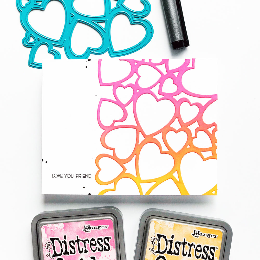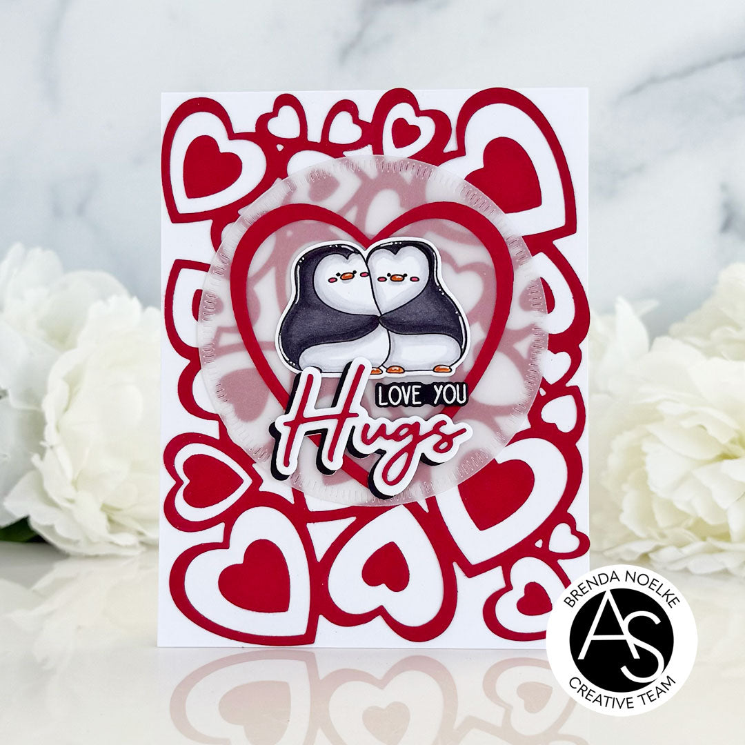 This beautiful cover die features a playful collage of hearts, perfectly sized at approximately 4.2x5.4 inches to fit a standard A2 card base.