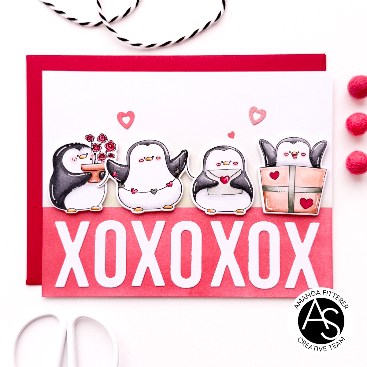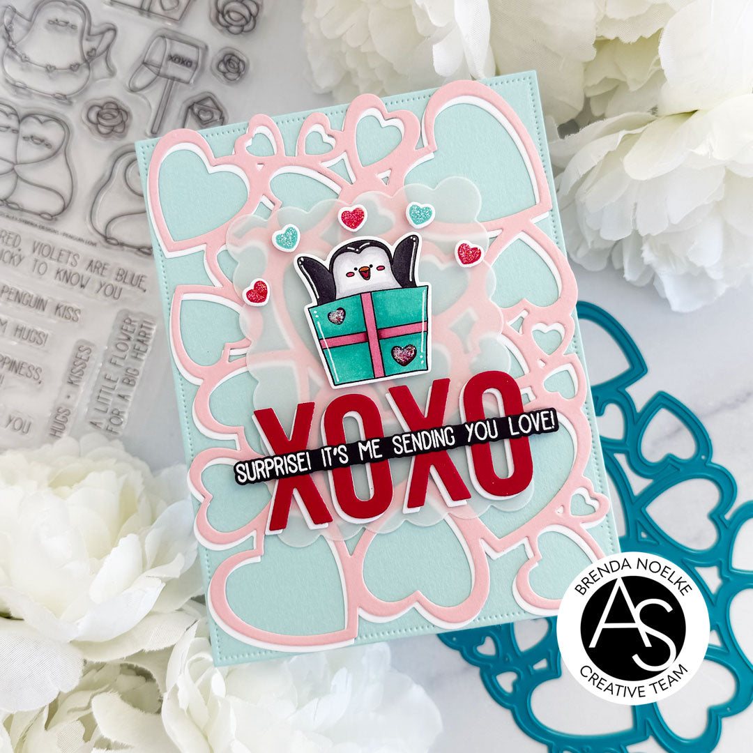 This adorable 4x8 stamp set features a delightful collection of 19 stamps, including playful penguins, sweet sentiments, and charming elements that are perfect for spreading love and joy.