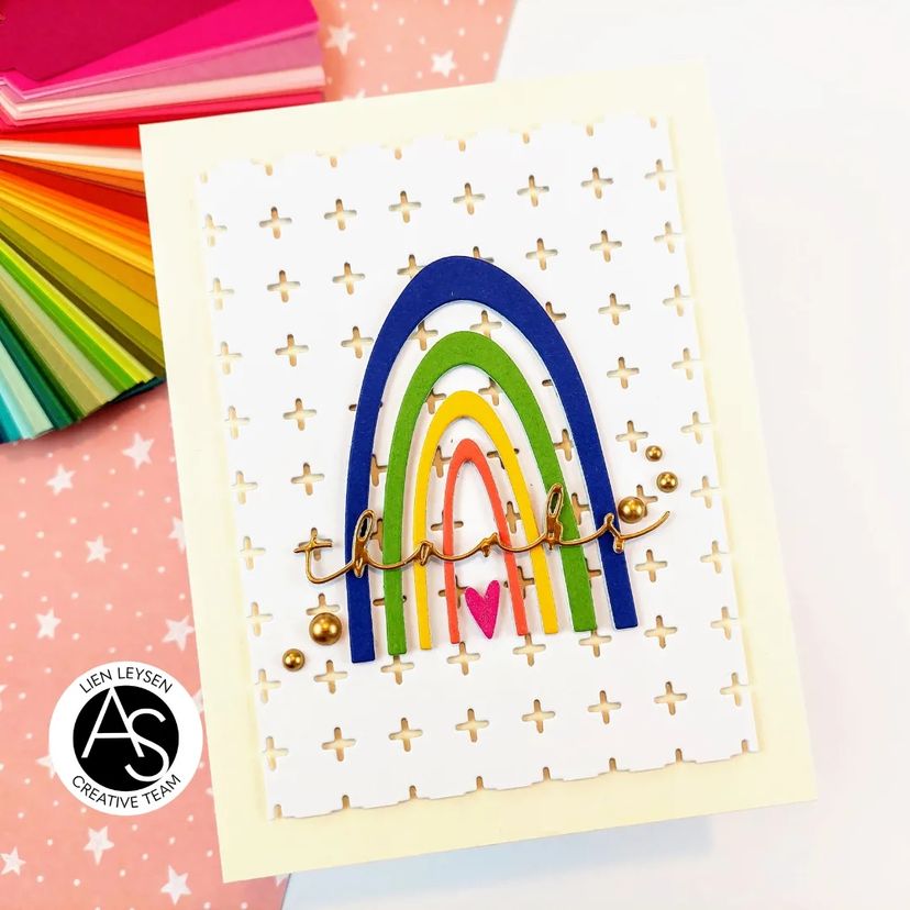 Create a delightful and whimsical rainbow with this versatile die set, which includes four rainbow layers and a heart die cut. Our Quirky Rainbow Die Set is expertly designed and crafted to coordinate seamlessly with our stamp/sentiment sets, allowing you to effortlessly elevate your crafting projects.