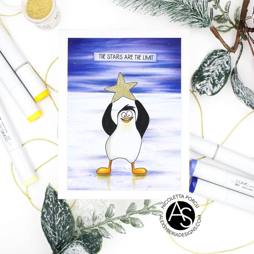 Smile and Wave Stamp set features 5 adorable penguins and contains accessories and some fantastic sentiments. Perfect for winter and Christmas cards!