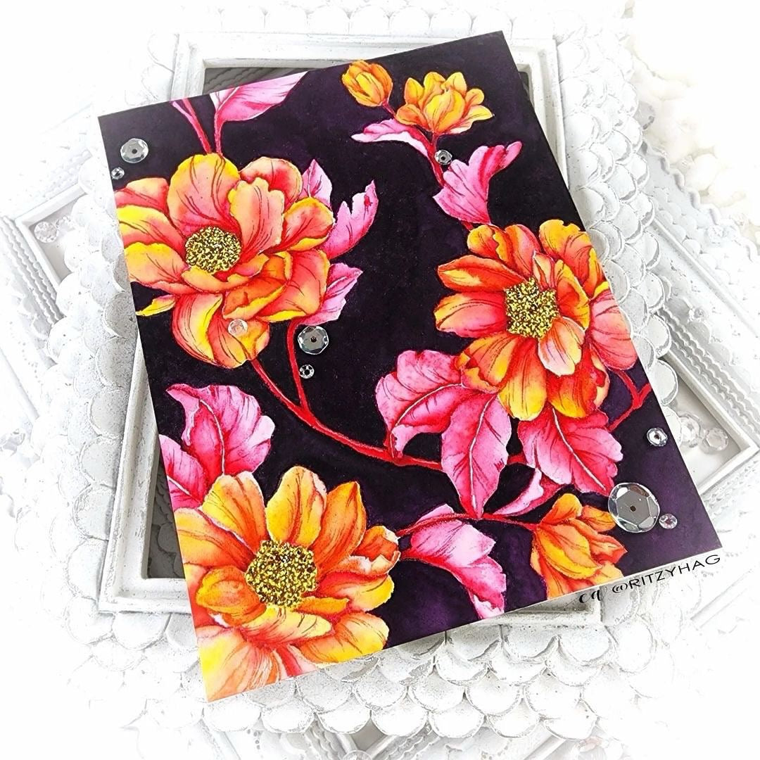 This large floral stamp is a joy to create with. It's designed to be the centre piece of your A2 card panel. Colour it with any medium of your choice, from alcohol markers to coloured pencils and more, this stamp will give you beautiful results any time.